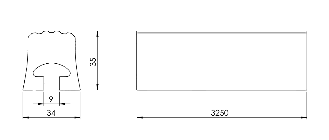 Perfil duro para banda L= 3250 mm